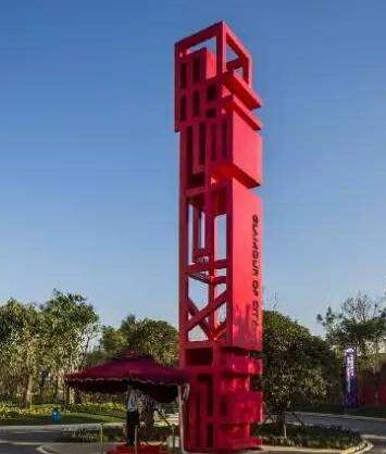 精神堡壘一般是用不銹鋼或者鐵管圍成的鋼架造型,也有利用鋁塑板、亞克力等材料制作而成的。精神堡壘一般具有導示的作用,用于樓盤、大型商場等的地方。所以在其表面還會噴漆,絲印,做出適合某個地方的精神象征,有導示和引領作用,至于為什么用不銹鋼材料的人多一些大家看下以下的幾個特點就會明白了。